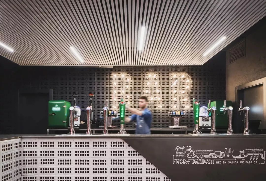 空间照明也是重要的元素。白天,自然光线得以通过开发看见进入室内,创造出一个光甬道。晚上,利用灯光划分出不同的工作区域,引导游客至市场的主酒吧。