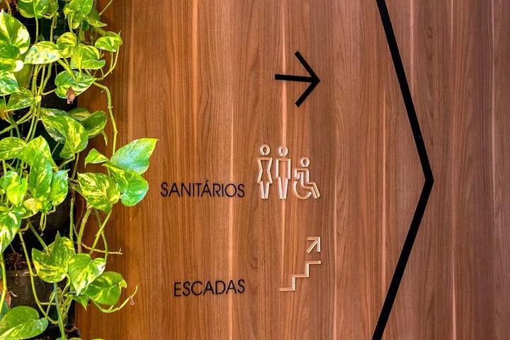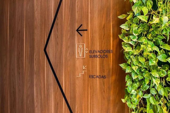 基于亚马逊商业大楼的内饰,maena公司采用浅棕色、黑色和白色的配色,与空间相统一。信息采用亚克力和金属面板,独立的信息易于辨识,整套导视系统具有质感。