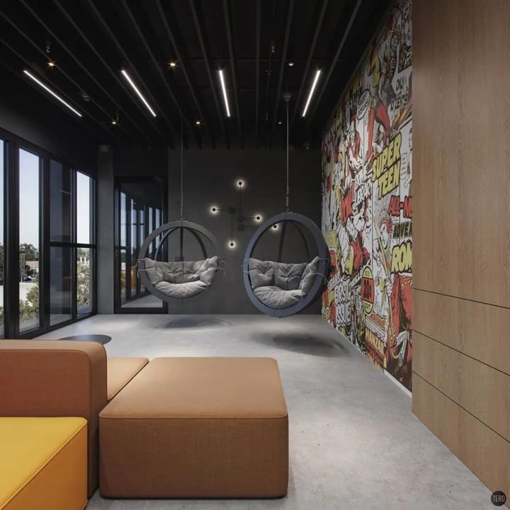 该项目是为印度尼西亚应用程序开发公司Insvire创建的,由Terodesign Studio设计,我们很喜欢它,因为设计很有表现力。该项目的特色建筑由3层组成:大厅、厨房和会议室位于一楼;二楼设有部门和联合办公区;三楼包含休闲区。