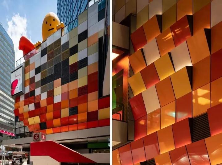② 建筑细节中融入标志和图示,也能完美的将建筑美和商业味融合。