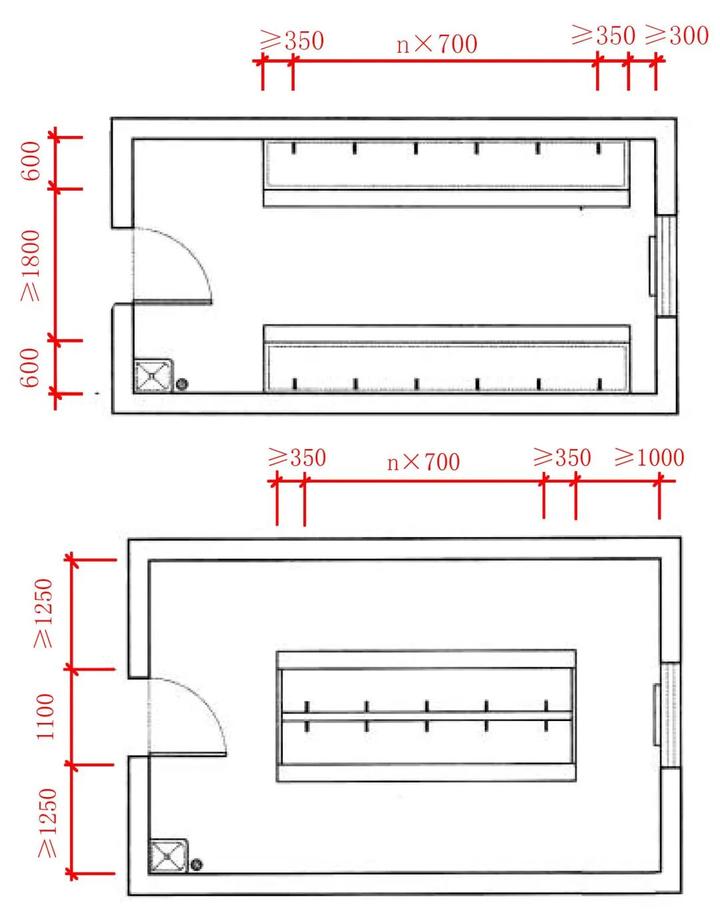 c、洗手池并排中心距离≥700,靠墙洗手池距墙≥550(单位:mm)。