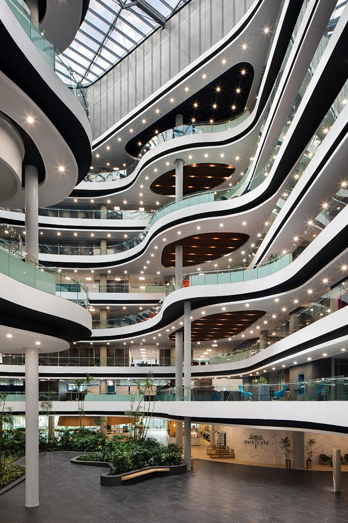 在中庭的顶部设计分为两种形式:透光天幕形式与闷顶形式。本期我们来看看它们有着哪些设计要点!