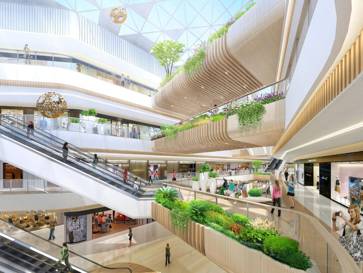 商场中庭作为商场各区域的共享空间,是整个商业的焦点,也是商场展示和商业活动主办的首选场地。需要根据商运要求布置吊钩和一些电气点位配置。