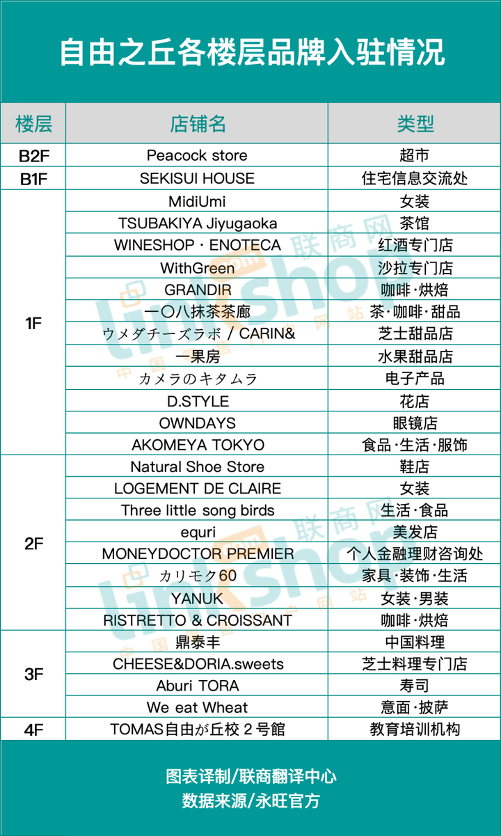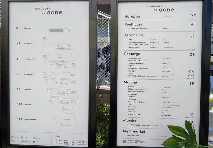JIYUGAOKA de aone涵盖了生活杂货、室内装饰、时尚潮流等多个领域的品牌。地下1层和1层主要是面包店和咖啡馆,而2层则包含服装品牌店和美发沙龙等共计26家商户。除1层外,其余地上楼层都设计成了室外商店区,与周边绿地相融合,让顾客体验到在街区漫步的愉悦感。Peacock Store作为商业的核心店铺,重新进驻地下2层。