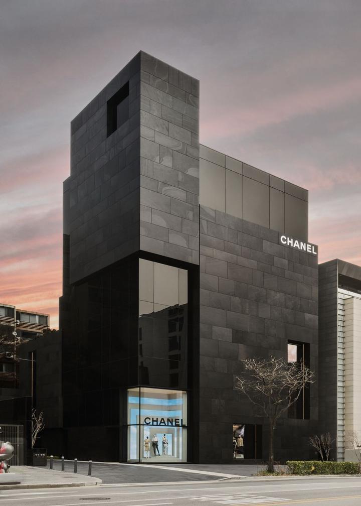由 Peter Marino 设计的香奈儿首尔旗舰店外观也是神秘的酷黑范儿,高7层,面积 1,830㎡。