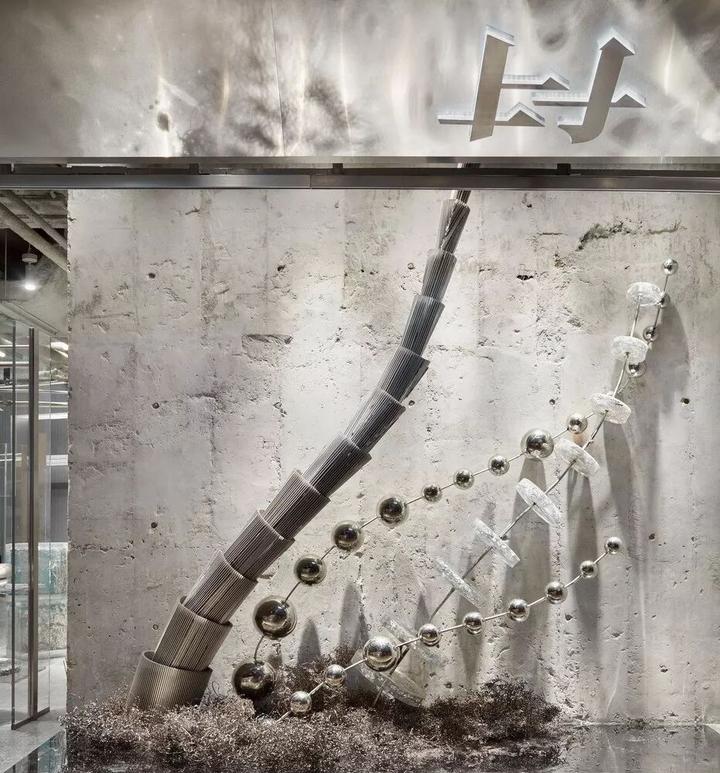 在100多平方的小空间内,设计师围绕着各种大胆的艺术装置创建出工业残骸与艺术之间的有机重构。让材料服务于设计语言,视觉冲击力爆表!