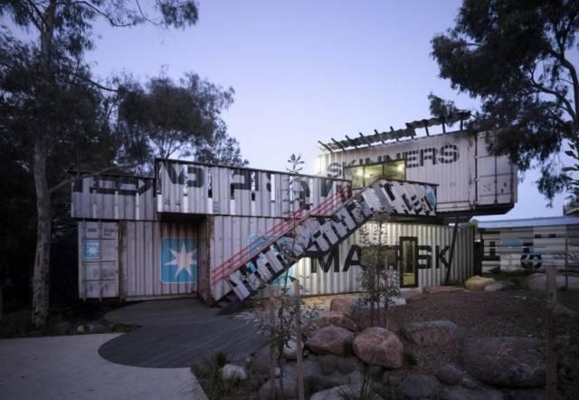 Skinners儿童活动中心位于澳大利亚墨尔本,由PHOOEY设计事务所操刀,是一座以可持续发展理念为核心的多功能儿童活动场所。建筑共两层,由四个回收的二手集装箱通过交错叠加的方式构成,不仅在外观上富有工业美感与童趣,更在功能上划分出可用于学习、绘画、舞蹈等多种活动的差异化空间。