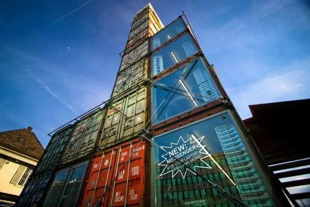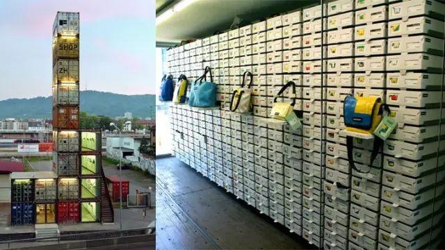 这座高达26米的旗舰店由17个集装箱堆叠构筑而成,共设9层空间。地下4层为零售区域,其设计仿若货仓,陈列着各式各样、数量多达1600件的Freitag包袋,营造出独特的工业风购物体验。4层以上则保留了集装箱的原始结构,形成空置的挑空区域。顾客可一路攀登至顶层观景台,在此眺望苏黎世西区的全景风光。