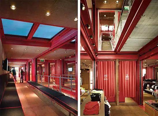 在可持续设计方面,项目注重资源循环与低碳运营。集装箱墙体设置超厚保温层,显著提高热能效率并降低空调依赖;所有集装箱模块可在租约到期后整体拆卸并重新利用,所占土地也能按原状归还业主,实现了建筑全周期的低环境影响,被誉为当时全球最环保的购物中心之一。