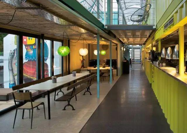 在规划设计上,项目彻底打破了集装箱以往陈旧、脏污的工业形象。每个集装箱均被粉刷成嫩绿、鲜黄、粉橙等明亮色彩,并开设了大面积的落地窗和玻璃门,不仅增强了室内的采光和通透性,也营造出清新现代的美学风格,成为街区中一道靓丽的风景。