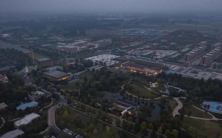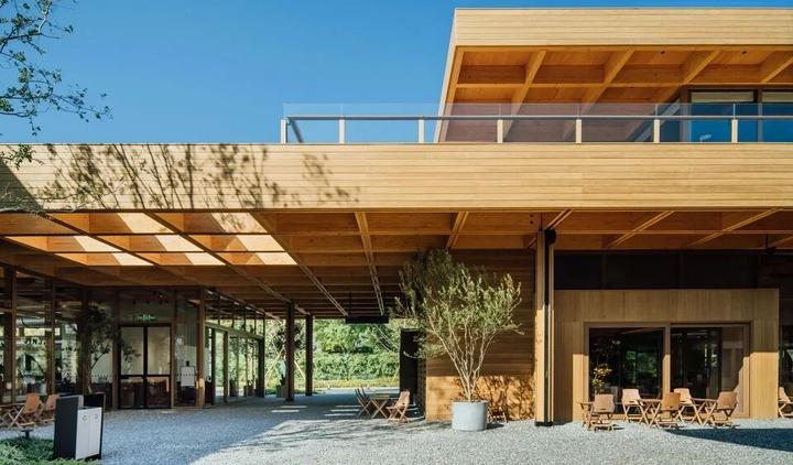 内街与外街采用不同地面材料进行区分,对两个内外街连接口进行刻意压缩,同时拉开室内主入口的树木间距,配合完成入口气氛营造。在市集的其他三个界面,则延续公园的森林气氛,将种植蔓延到了社区用地,借此架构出植物错落的景深,营造出自然沉浸式体验。