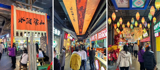 宋朝食间是以大宋文化为主题的街区,还原宋朝文化、艺术、生活场景,加入水泊梁山和水浒英雄好汉场景元素,打造了沉浸式宋风实景生活餐饮主题街区。
