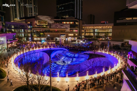 项目还特邀英国FLO景观设计事务所设计了夜间广场灯光氛围,在不同场景下呈现不同特色,形成绝美夜景。