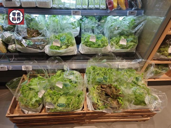 蔬菜区大多为有机蔬菜,用单独的塑料袋进行了包装方便消费者选购,此外,在探店过程中还看到该店供应了“种在土里的生鲜”,新鲜采摘现吃让人距离“鲜”更近了一步。