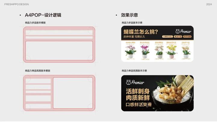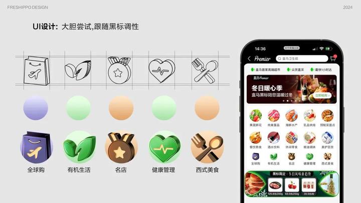 如果你在盒马Premier的配送范围,在盒马APP上还有专门的入口页面。线上部分主要介绍会场视觉体系的一些应用规范和UI方面的一些探索。