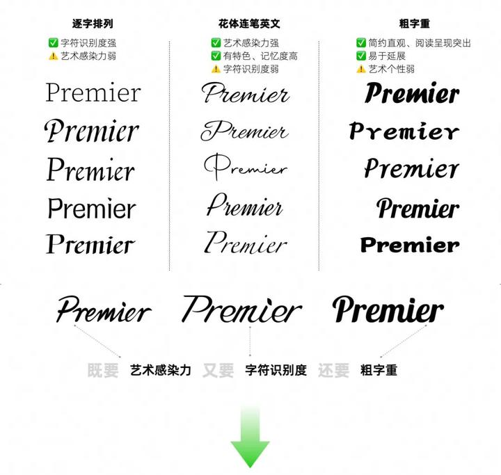 对于“Premier”字样,我们选择西文花体,追求艺术性与辨识度,并确保其在不同媒介上的适用性。粗字体设计提高了标识的可见性,适用于多种场合。这种风格不仅增加了亲和力,还传递了盒马Premier的开放与热情,促进了与顾客的情感联系。