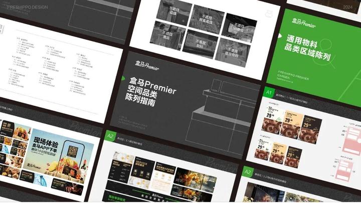 随着全新品牌体系的诞生,需要在实践检验其实效性。门店运营中复杂的设计需求很可能导致视觉系统的混乱。因此,我们坚持以品牌精神为指导,以内容分类为基础,呈现多维度的视觉设计,并严格制定陈列规范,逐步构建和积累专属于盒马Premier的品牌资产。