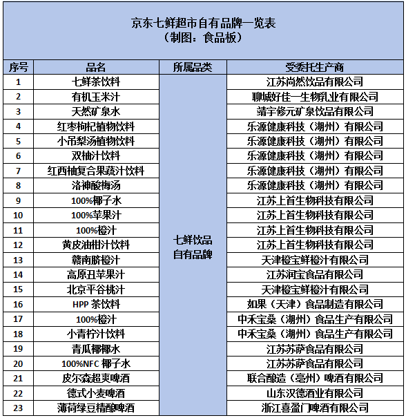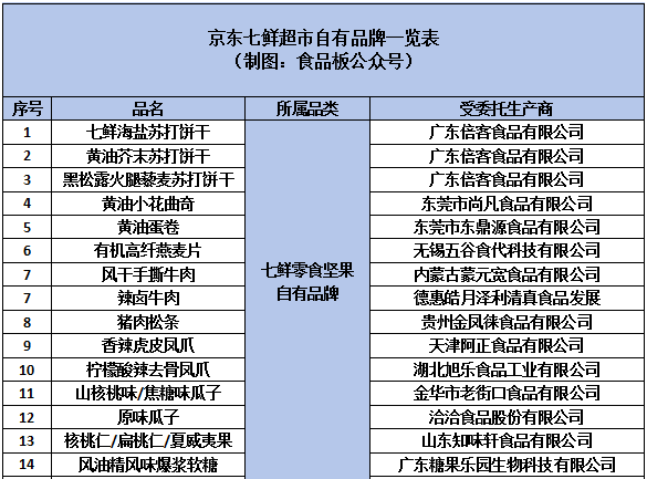 同样,我们也将观察到的七鲜超市部分自有品牌进行了梳理,一起来看看热门单品背后的代工厂都有谁呢?