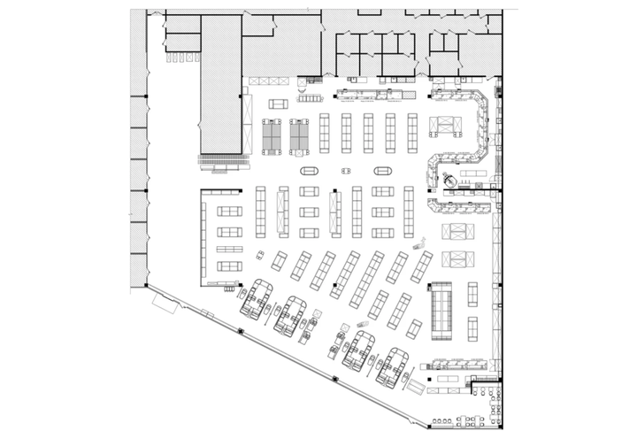 店内重现了欧洲杂货市场的氛围,明亮的印刷品与地板和天花板相接壤,为顾客提供了愉悦的购物体验。