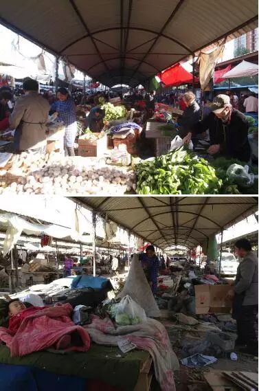图1 北京太阳宫早市昔日的红火(上)和拆迁时的场景(下)