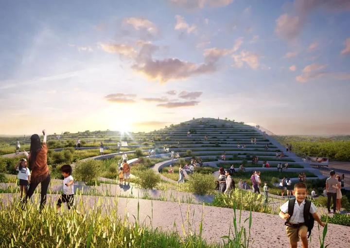 屋顶的梯田将种植不同的作物——菠萝、水稻、玫瑰、茶等的梯田——每种植物的等级取决于植物的气候要求。屋顶包括遮蔽点、长凳和野餐桌,让游客可以坐下来欣赏美景。
