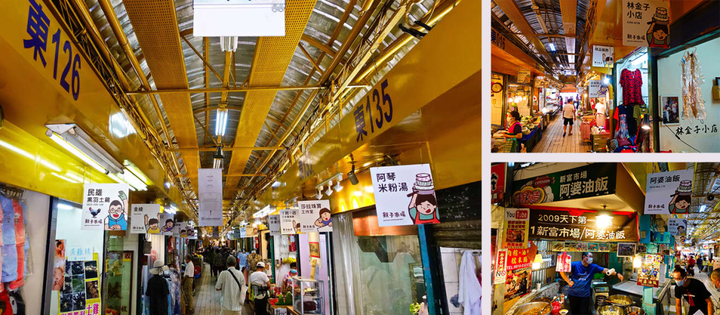 这是台北日据时期保存至今的一个菜市场,也是台北市里最早规划的公共市场。虽然历史长久,但事实上新富市场在建成之时是一个相当前卫的建筑。当时,这里的房屋大多几乎都是木材搭建的棚屋,而新富市场则是唯一一个由钢筋水泥打造而成。当时空调等通风设备还没面世,为了解决采光、通风等需求,新富市场以马蹄形的形状建成,地面沿着马蹄形挖一道排水渠,市场中央开设天井,四周墙面高出挖开窗户,并在屋顶上弄9处通风口,使市场的卫生条件符合1930年代的政策需求。