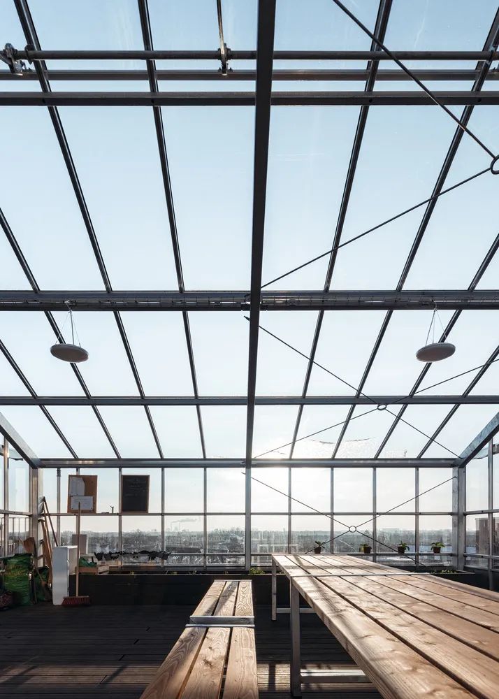 塔楼和建筑主体将蔬菜市场的历史融入到新建筑的同时,还通过大玻璃的开窗创造了良好的采光条件。在邻近的公园中,居民可以种植、食用和销售自己的有机蔬菜,在建筑内部和周围创造出健康社区。