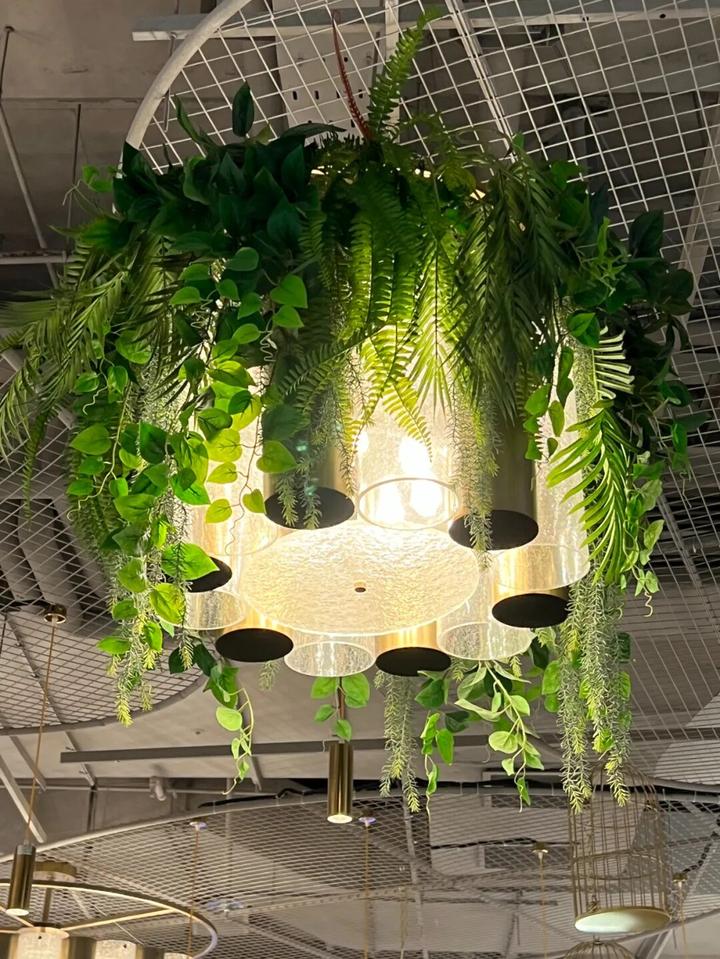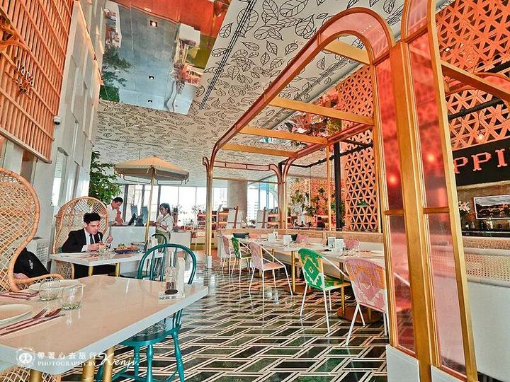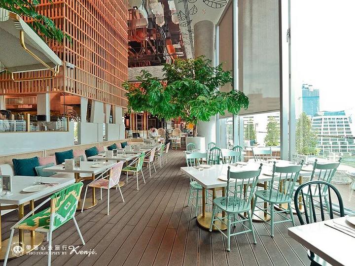 Open House 位于 Central Embassy 商场顶层 (L6层),搭乘自动扶梯来到 L6,映入眼中的是漫天的树叶图腾,在整个空间里布置了大量的绿色植物。