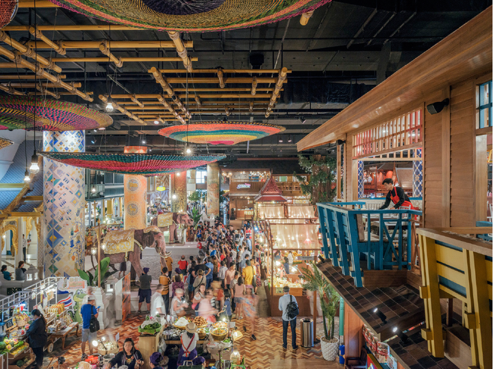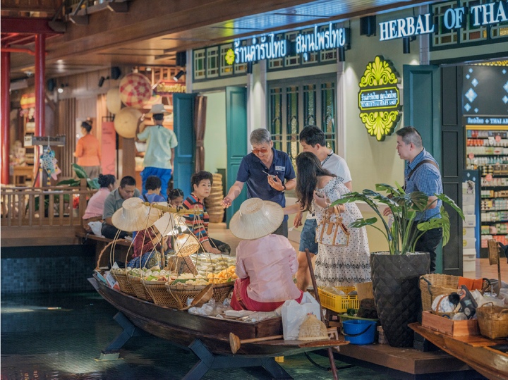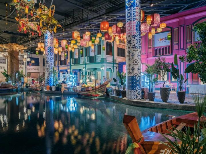 SOOKSIAM 首次把水上市集搬进购物中心,几百个品牌摊位沿着人造水道排开,还原了最地道的泰国水上生活文化。