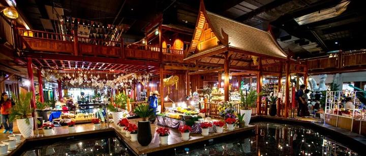 室内的水上市集与室外河岸呼应,展现“东方威尼斯”之美,并结合独特的泰国文化表演展现了泰式风情。
