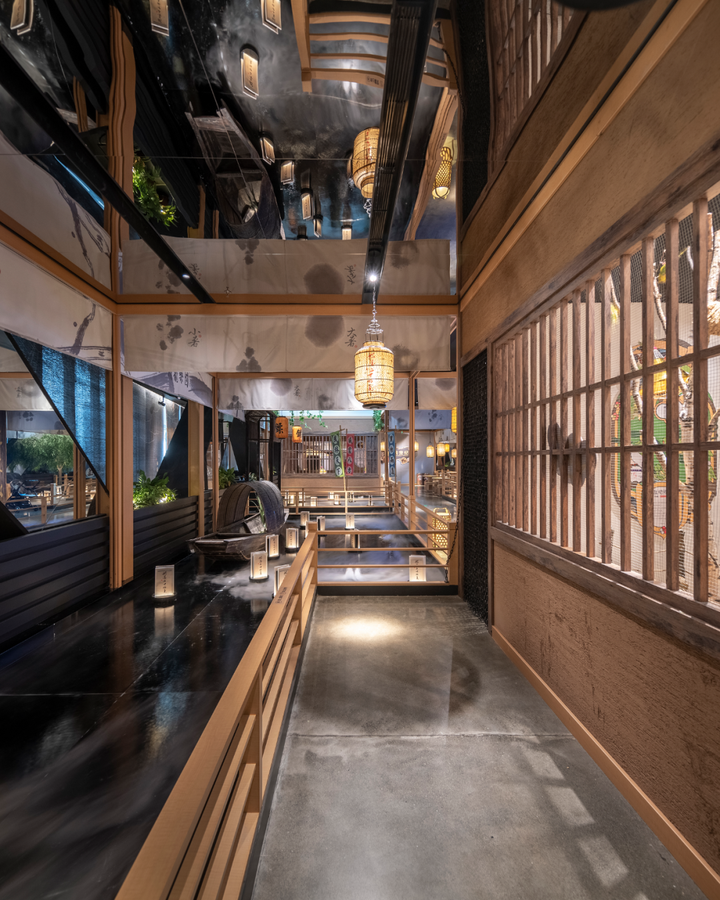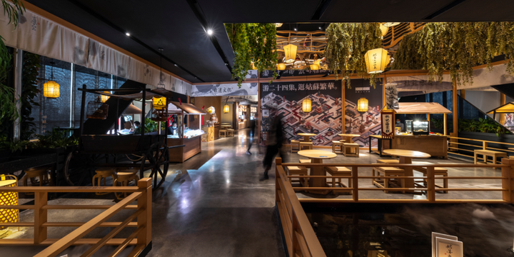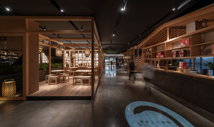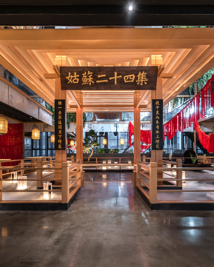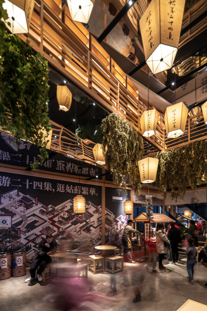 “姑苏二十四集”是一个将近6000平方的设计空间,以一个桥状连接构成空间序列:即两个建筑之间的一个两层的长廊,用类似中国湖南或广西那里的民居里边儿的廊桥的方式,展示当下苏州人的生活画卷。