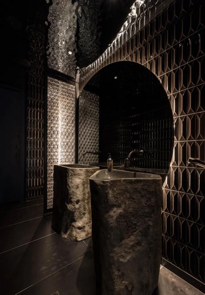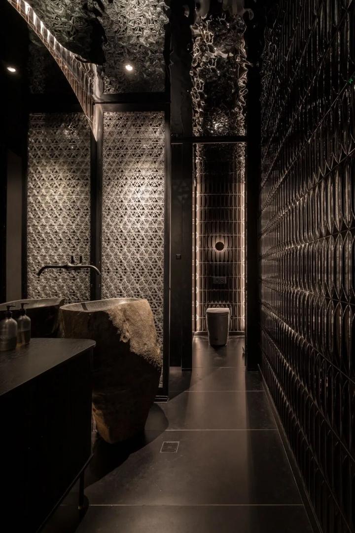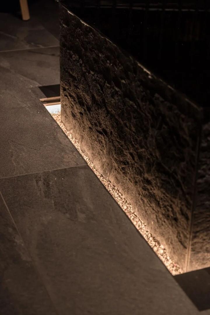 当灯光照射在相异的黑色材料上,光影和材质营造的肌理为整个空间附加了丰富的斑斓质感。