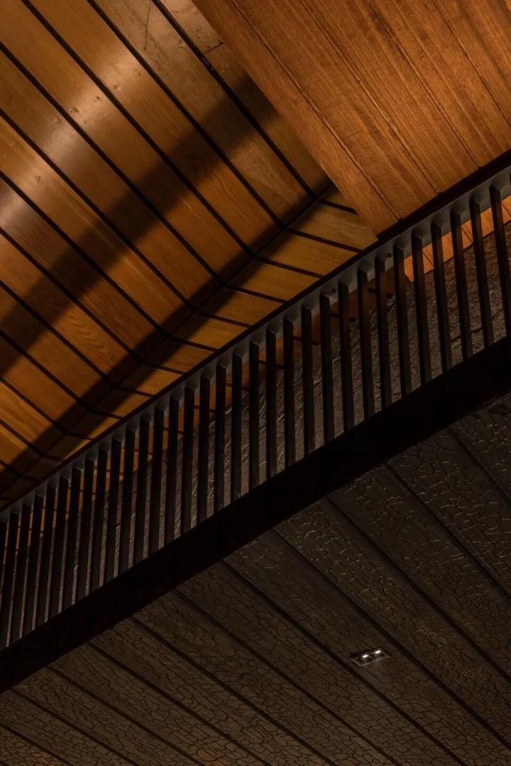 设计师保留了建筑内既存的木制天井,在其表面和周围应用了丰富的黑色素材,形成和谐统一的装饰元素;