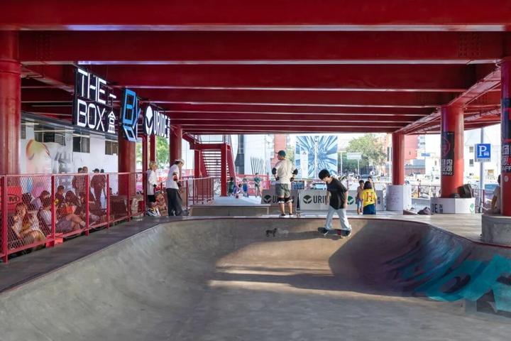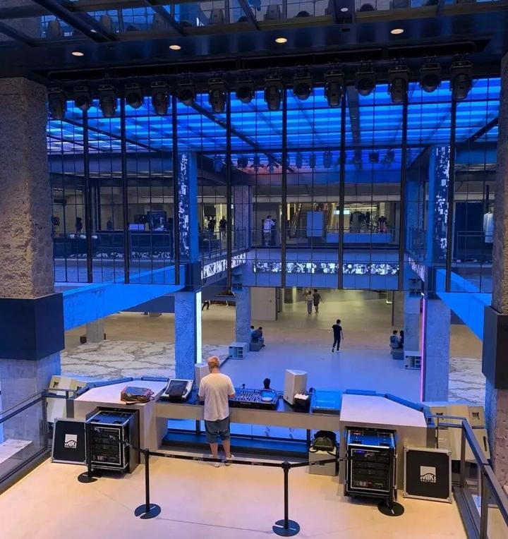 北京朝外the box,对老旧建筑进行改造,保留原始建筑结构的粗犷感,融入玻璃、金属等现代元素,打造出极具工业风与未来感的开放式空间,使室内外空间相互渗透,模糊了界限。