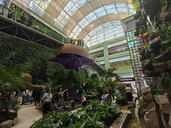 (二)业态与场景全面升级。一是空间功能焕新。硬件设施方面,欧亚金街采用鎏金装饰与智能灯光系统,营造高端奢华氛围;生态广场实现“四季如春”,温度恒定在25℃,湿度保持 60%,空气质量达到国家一级标准;童装区配备母婴室、儿童卫生间等10项专属设施,极具人性关怀。二是服务体验升级。欧亚金街提供从选购、定制到保养、回收的全生命周期服务;人参体验中心每周举办中医义诊、人参品鉴活动,累计服务消费者 5 万人次;生态广场定期开展亲子自然课堂、花艺 DIY 等活动,增强互动体验。