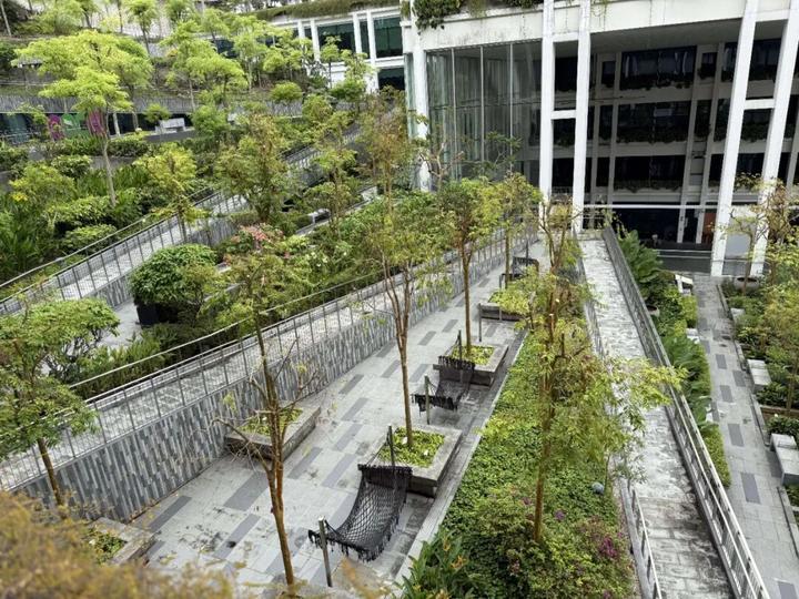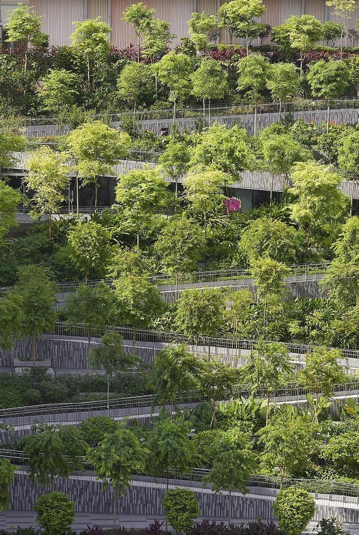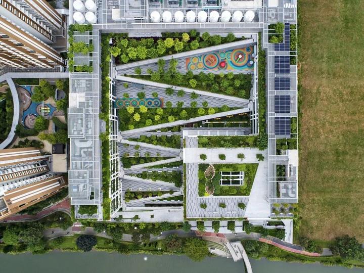 项目安装了自动感应灌溉系统和雨水收集装置,收集的雨水用于灌溉屋顶植物,实现了水资源的循环利用,减轻维护成本的同时,还赢得了绿色建筑白金奖和新加坡建屋局优质工程奖。