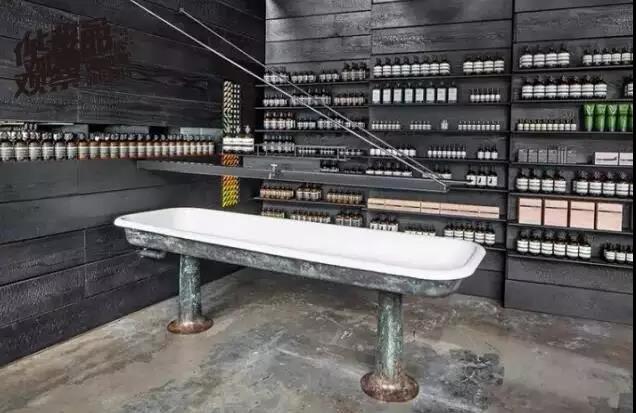 不过,虽然各个门店都有自己独有的气息,但也有一些共通的元素,在每家门店中都有一些固定的元素:水槽、桌子、水龙头、墙壁上的陈列架……无论你走到什么样风格的Aesop门店中,你都能够一眼认出它属于Aesop。