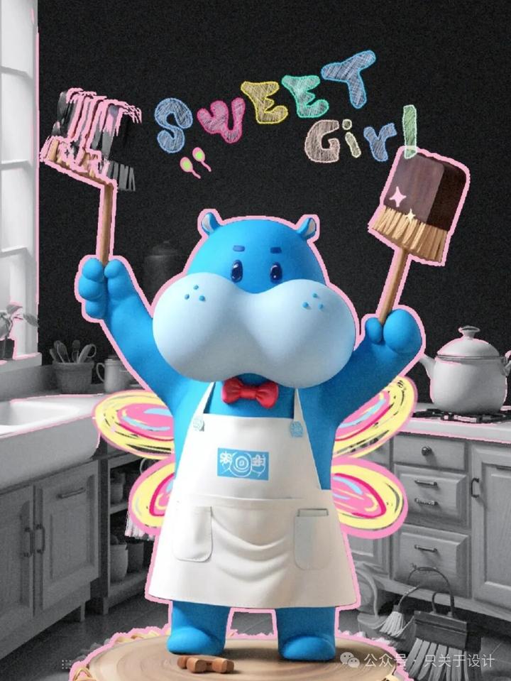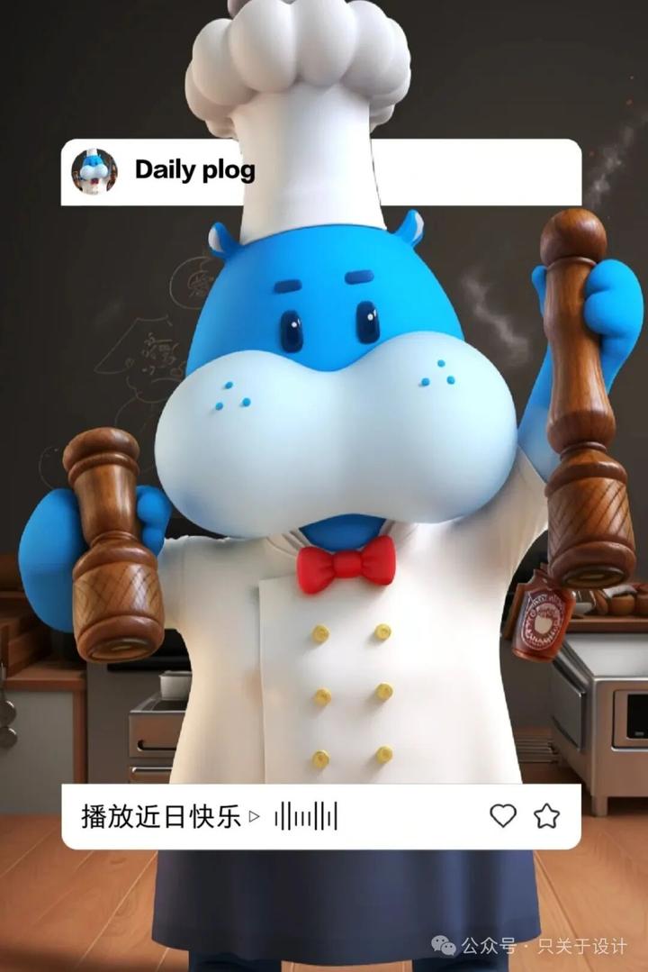 形状上一眼既能看出是河马,并且嘴巴很大,看起来就比较能吃,点明行业属性。