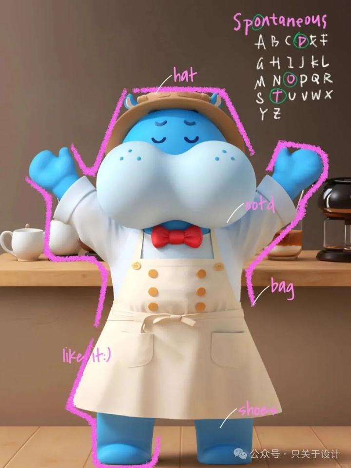 放大后的IP嘴巴一眼看去更像是大屁股,所以有了大屁股脸的称呼,为IP带来戏剧性。将IP的身形采用1:2的比例放大,更加亲近可爱讨人喜欢。