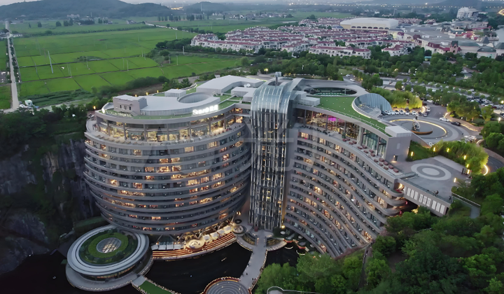 位于上海市松江国家风景区佘山脚下的天马山深坑内,是世界首个建造在废石坑内的五星级酒店。地上 2 层、地平面下 16 层(其中水面以下 2 层),总建筑面积超过 61,087 平方米,共拥有 336 间客房和套房,所有客房均设有观景露台。