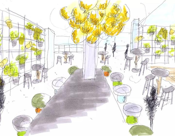 在办公室,设计师画出了建筑外观的草图 ▼