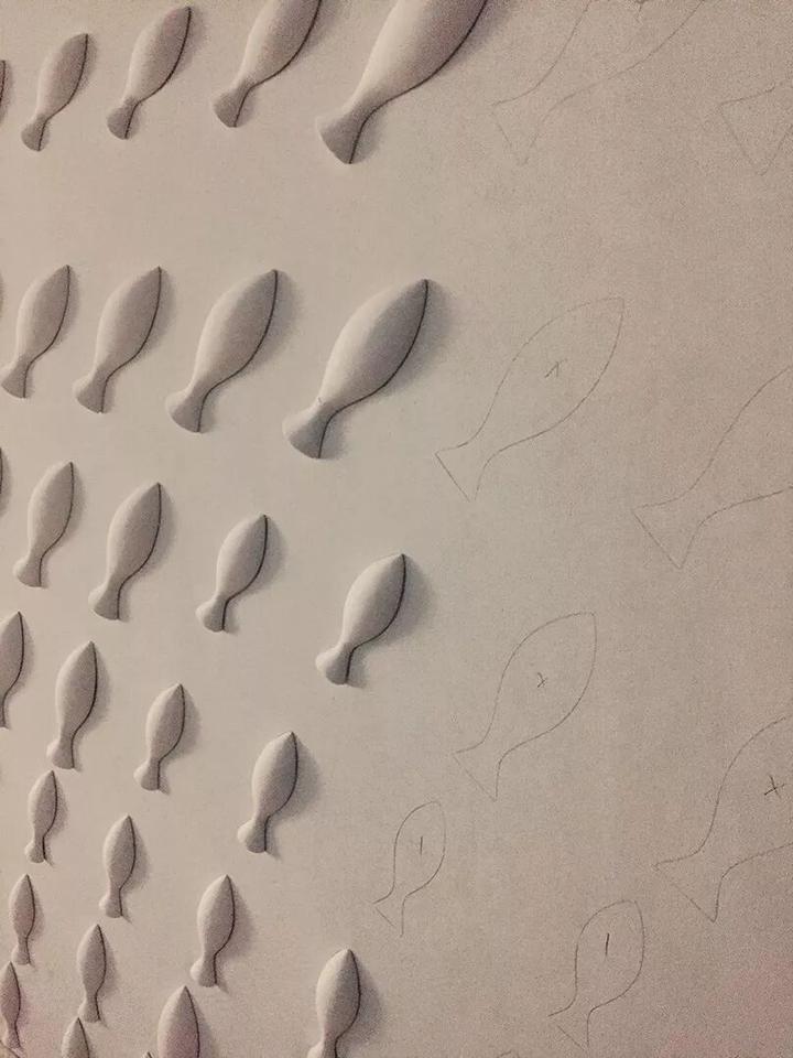 在众多细节当中,最让人惊喜的是大厅一道充满了鱼形状的墙 ▼