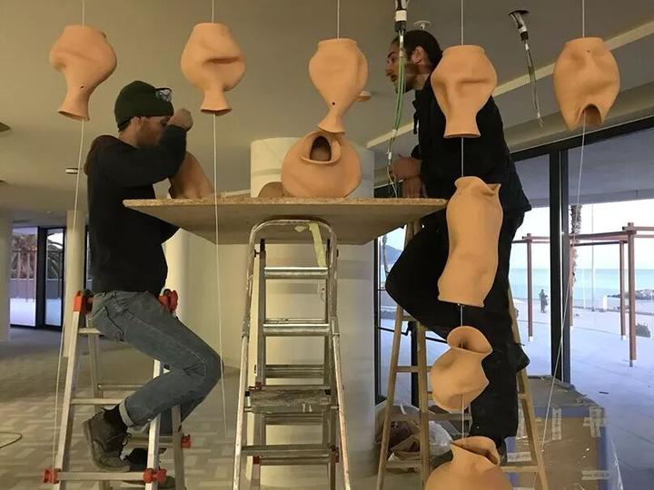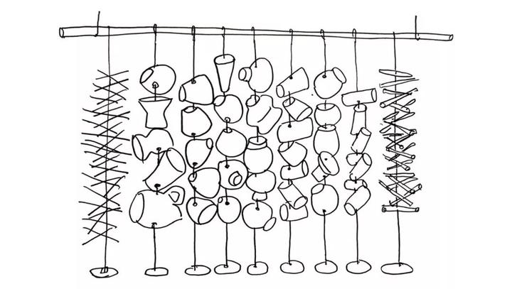 这是一袭由陶瓷容器串联构成的装饰帘幕 ▼