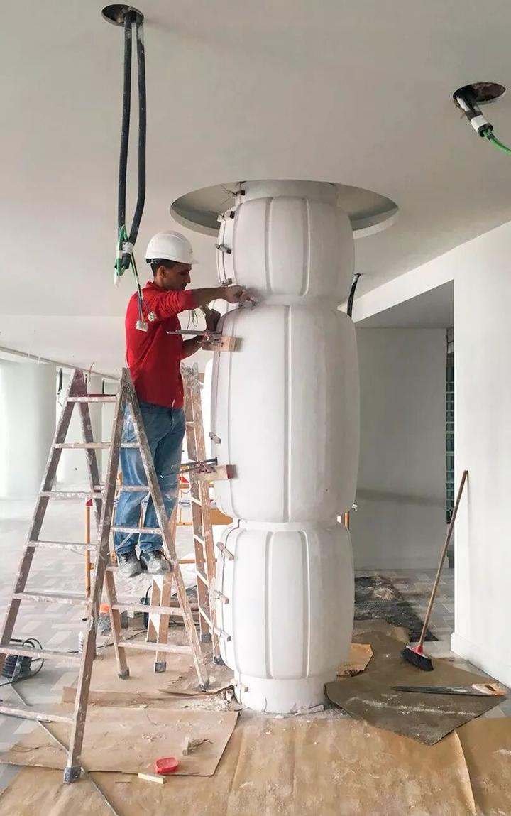 柱子设计有几种形式,一种是外挂石膏造型,预制好的石膏组件 ▼