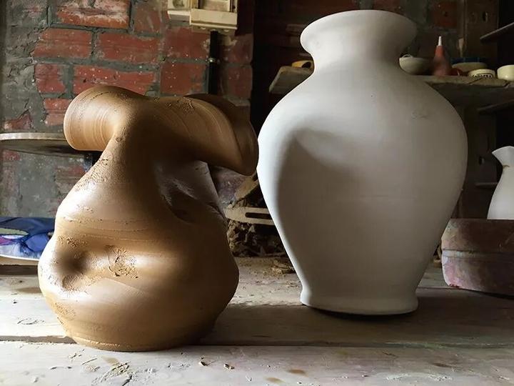 每一个陶瓷的形状都不规整,甚至有些扭曲,先将这些陶瓷容器烧制出来 ▼