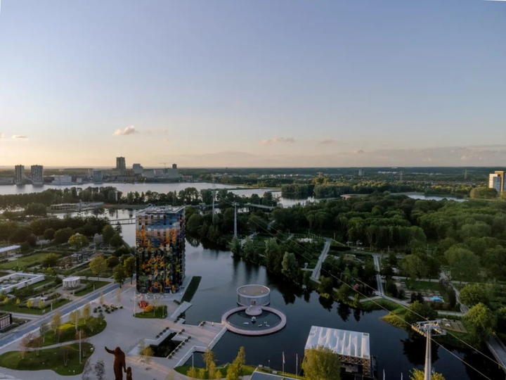 建在阿尔梅勒市的维尔湖泊之上的艺术馆M在 2022 年春季世界园艺博览会期间开放。建筑师基于其环境背景,将博物馆及外部区域想象成三个切向环的序列:“港口”、“舞台”和“瞭望台”。