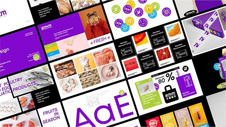 今天分享的这个ZMKM生鲜折扣店,整体以明亮的紫色系为主视觉,搭配现代、简约、个性的设计元素,很难让人不心动!