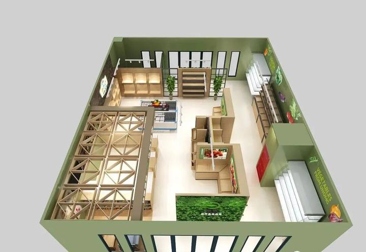 产品分类分区展示是生鲜超市格局中的重点,各区域间的位置布局以及逛起来的舒适程度将影响客户心理。