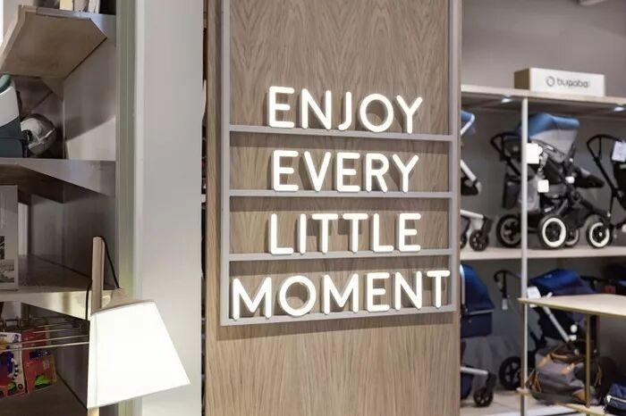 受婴儿时尚在现有概念商店的成功启发,Dalziel&Pow 将重点放在了视觉营销上,主要展示了三个不同的主题:“欢迎来到世界”、“日常穿着”和“临时穿着”。像电影院的标志和情绪板这样有弹性的导航工具,能保证这个区域不断感觉到新鲜和时尚。灵活的空间布局更容易适应店内偶尔举行的谈话和研讨会,这获得了千禧一代准妈妈们的支持。