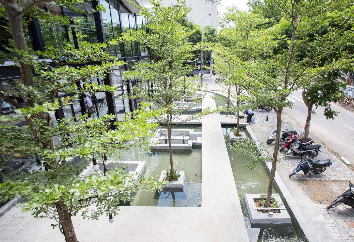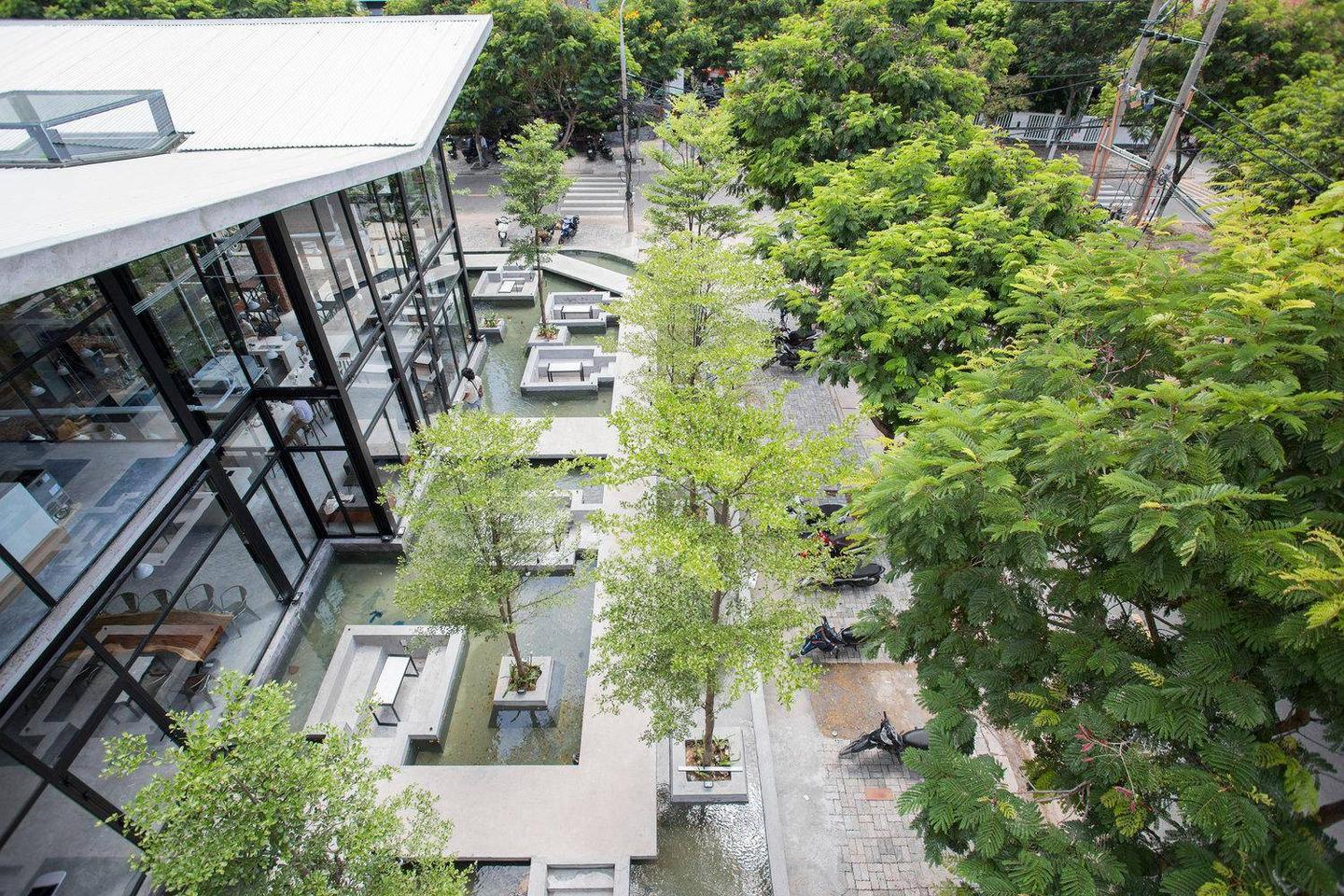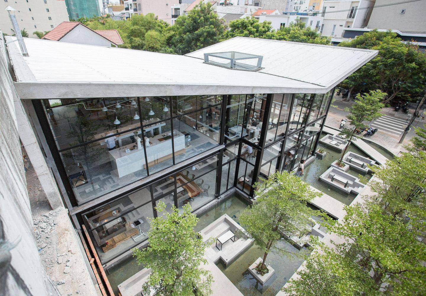 该项目的两大亮点是整个作品位于一个大湖上,鸟翼形屋顶,表达了投资者让越南咖啡行业在国际舞台上飞向大海的梦想。在建筑的中心,布置了一片绿地和一个特殊的结构,其概念是一杯咖啡豆正在发芽并向天空生长,象征着刚刚涉足咖啡行业但有成长和发展的抱负的年轻人。
